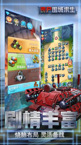 1、玩家在各个场景中通过放置各种炮塔来将僵尸们全部消灭;