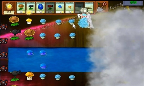 1、游戏中加入了一些一次性的设定,使用割草机可以一次性消灭一整条的僵尸。