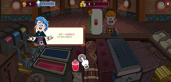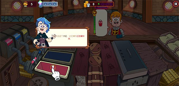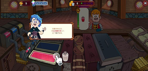 1、下载进入梦幻药剂2游戏,顾客需要红色药水,点击水缸,填充红色精华液;