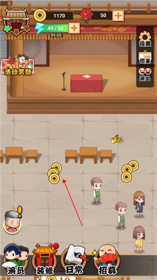 5、客人看完相声后会留下金币,记得收取。