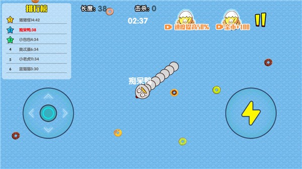1、发育期:在游戏的前两分钟蛇蛇们都很短,击杀获得的能量很少而加速还要浪费能量,本身长度也不够无法对敌人形成有效的威胁。尝试击杀是可以的,但是更重要的是发育,吃闪亮的飞行能量块能让你迅速长大!