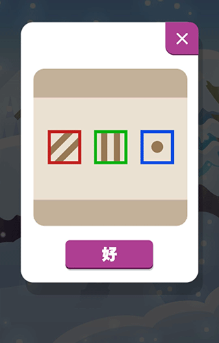 6、从右边三个雪人处获得提示,红框斜纹,绿框竖条,蓝框圆点,打开箱子获得钥匙。