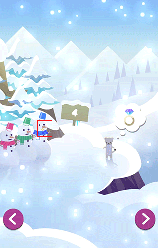 2、去右边,点雪人,点蓝色雪人嘴巴,获得指环。