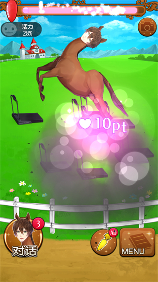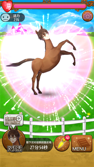 马之王子殿下是一款打破常规的乙女游戏,本作可攻略的男主人公竟然是一张长着俊俏人脸的马,在机缘巧合之下你与这一匹马开启了一段奇幻的生活。在游戏中玩家需要通过各种放置玩法,不断点击生成的道具来获取分数,给人马购买道具提升好感度。好感度到一定的数值之后就可以解锁亲密聊天以及各种梦幻CG。