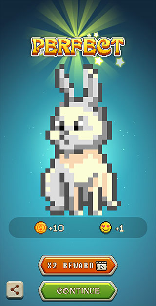 6、完成后,一只彩色的兔子就成功诞生了,把它放到你的像素岛屿上,可以提升你的等级获得相应的奖励哦。