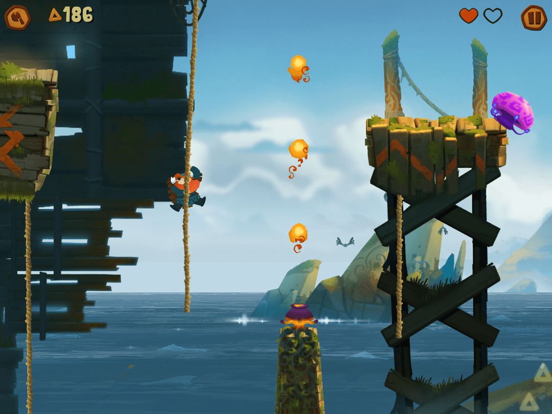 奥德玛是一款美工画面设计精美,动作特效十分流畅的横版闯关跑酷类手游。游戏关卡设定并不是很难,非常适合新手来进行跑酷训练,玩家需要考虑移动与跳跃的时间点,稳稳地降落在平台上,与关卡BOSS展开激烈的战斗。游戏题材以维京人为主带我们领略北欧文化,体验亲情,勇气和善良的可贵。内容一共分为四大张杰,每一章节的场景都不容,具有耐玩性。