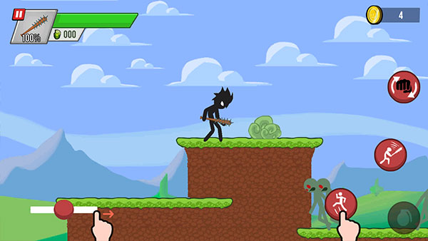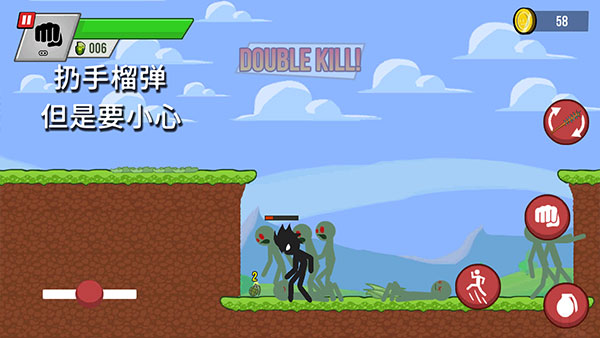 火柴人大战僵尸是一款以火柴人题材打造的角色动作类手游,游戏中玩家需要操纵火柴人进行无限长的关卡冒险并尽可能多的获得金币得到高分。在关卡中除了不断来袭的僵尸,还有深不见底的深渊和各种各样的陷阱。关于游戏玩法也非常简单,模拟键盘的虚拟摇杆,加上简单的攻击按钮和武器系统系统,操作起来还是非常的轻松。