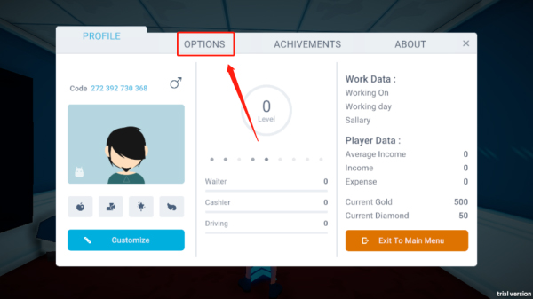 1、打开失业生活模拟器游戏,进入游戏后,我们可以为自己的角色取名字和DIY喜欢的形象,