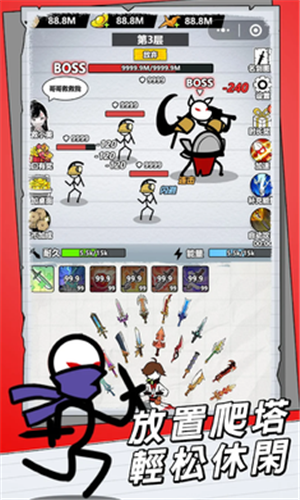 纸上王者是一款火柴人题材的策略类手游。在游戏中玩家可以解锁不同的武器装备来进行战斗。采用放置挂机的玩法,玩家就算去做别的事情回到游戏中也能够收获满满的资源。一键提升自己的战力。配合着海量的技能进行组合搭配,解锁更多的战斗流派,每一款都有不一样的新鲜感。除了普通的闯关模式,游戏还支持无尽模式,看你能够坚持到第几层。