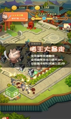 2、简简单单就能放置升级,点击拖动,就能将低阶的猫咪合成升级成为高阶的猫咪。