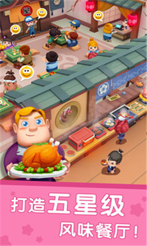 3、Q版画风可爱无比,放置元素轻松上手,提升餐厅的规模,才能让生意更好。