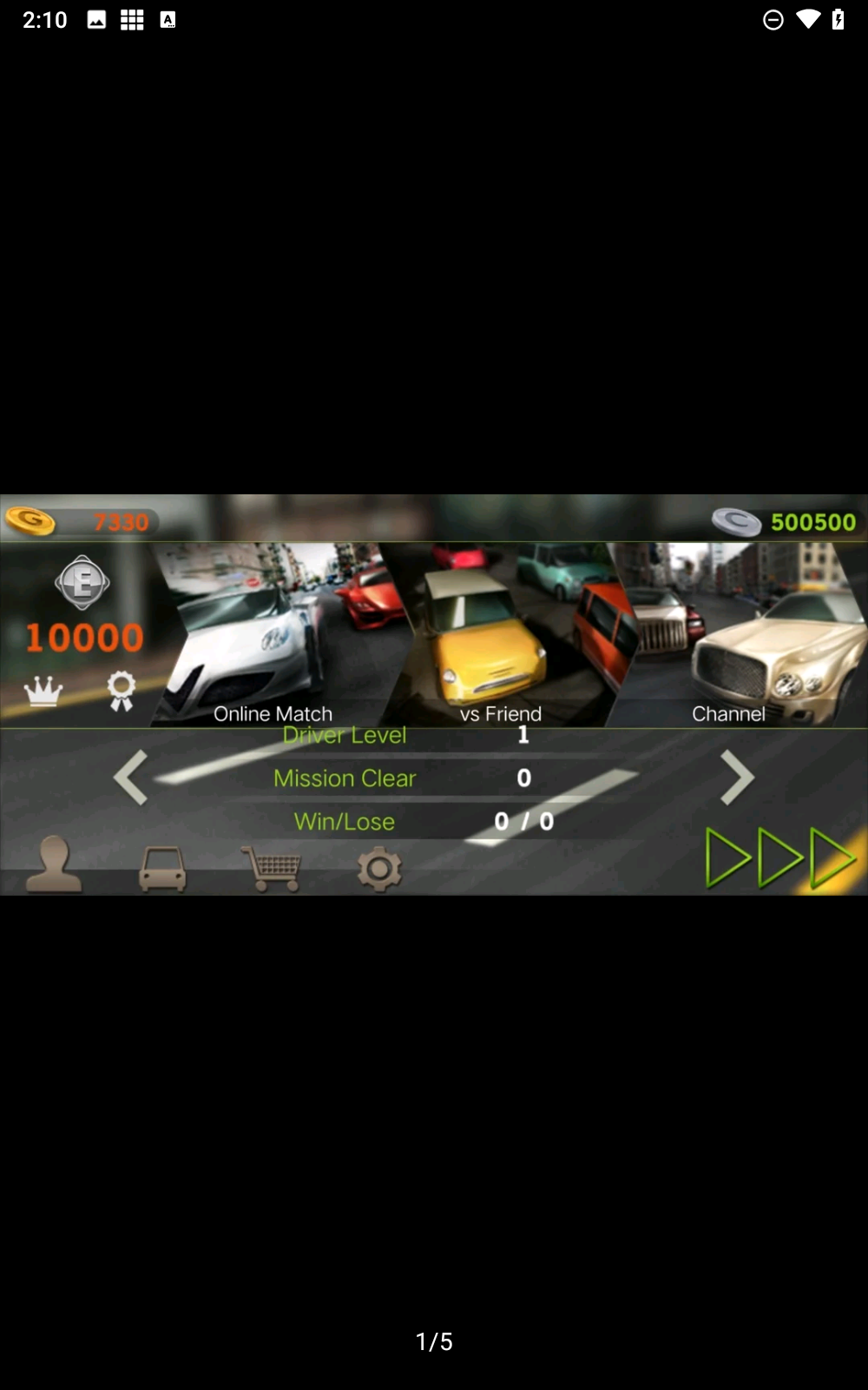 1、首先我们点击首页右下角的箭头按钮来开启一场快速比赛,然后我们可以选择要驾驶的【赛车】和要比赛的【模式】。