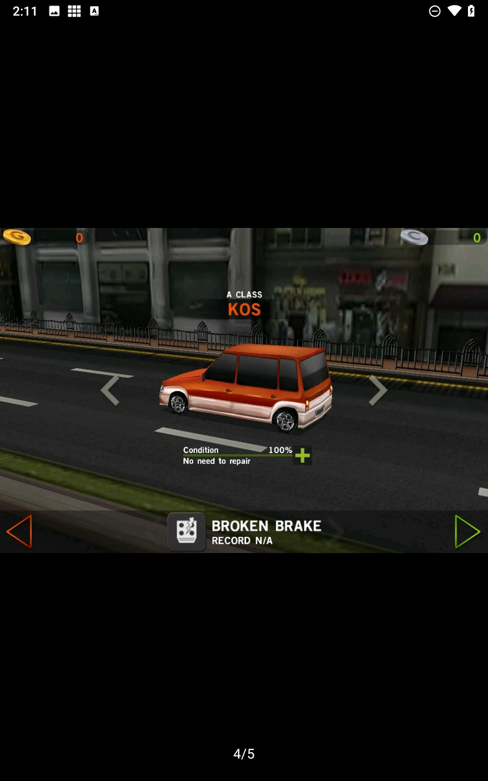 9、如果未能及时拨正方向盘,则很有可能造成【交通事故】,这时候游戏也就结束了,点击左侧箭头返回,右侧箭头继续。
