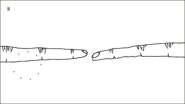 最后,两个手会重新出现,但是此时并不会如同一开始那样,而是会抓住其中一个手的手指,被抓住的抛了一抛后发现自己的手指断下了。
