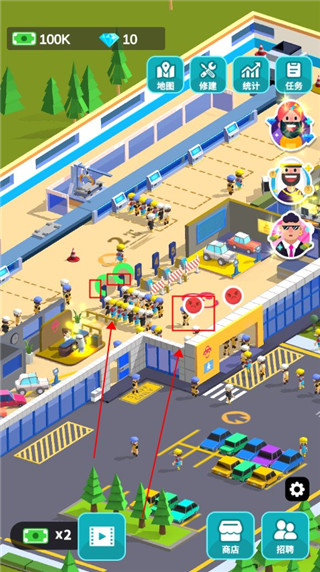 1、不管是什么工厂,招聘工人首先是第一位,点击大门这里的充气人偶可以不断招聘工人。