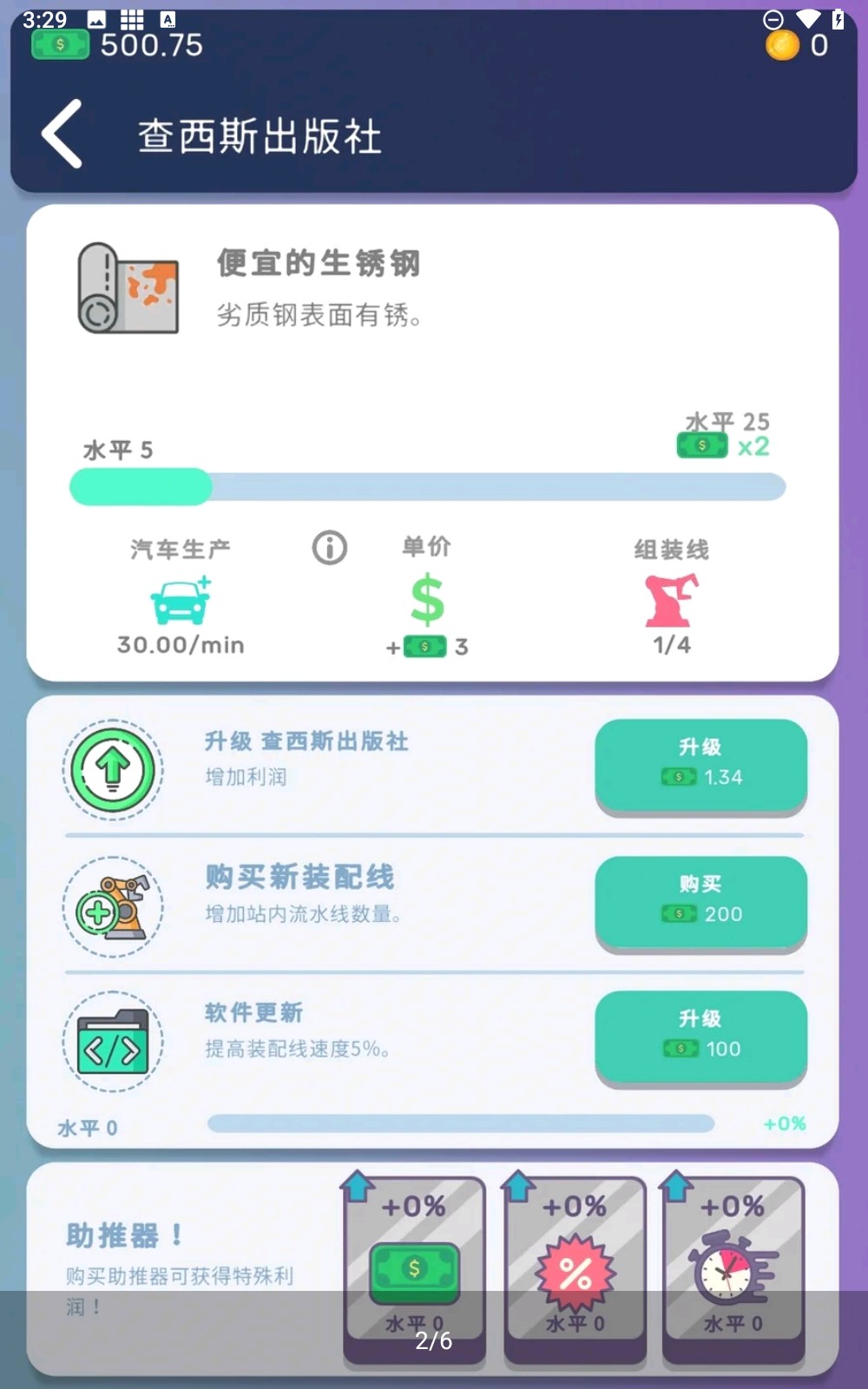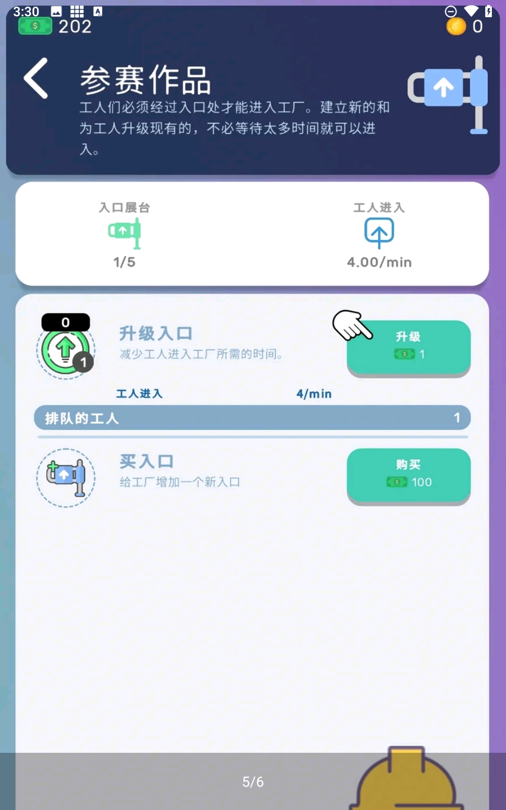 4、工厂的设备地盘是生产的重要途径,我们点击底盘可以花费金钱升级底盘,用来提升效率和收益。