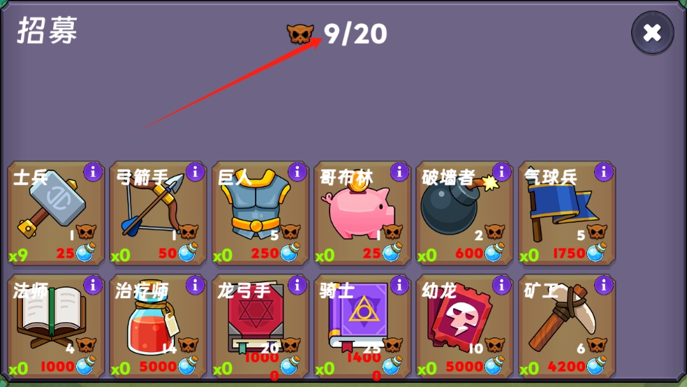 4、上方显示的是玩家现在所有的士兵数量。