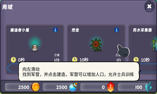 1、玩家可以点击军营或者兵营来进行士兵招募。