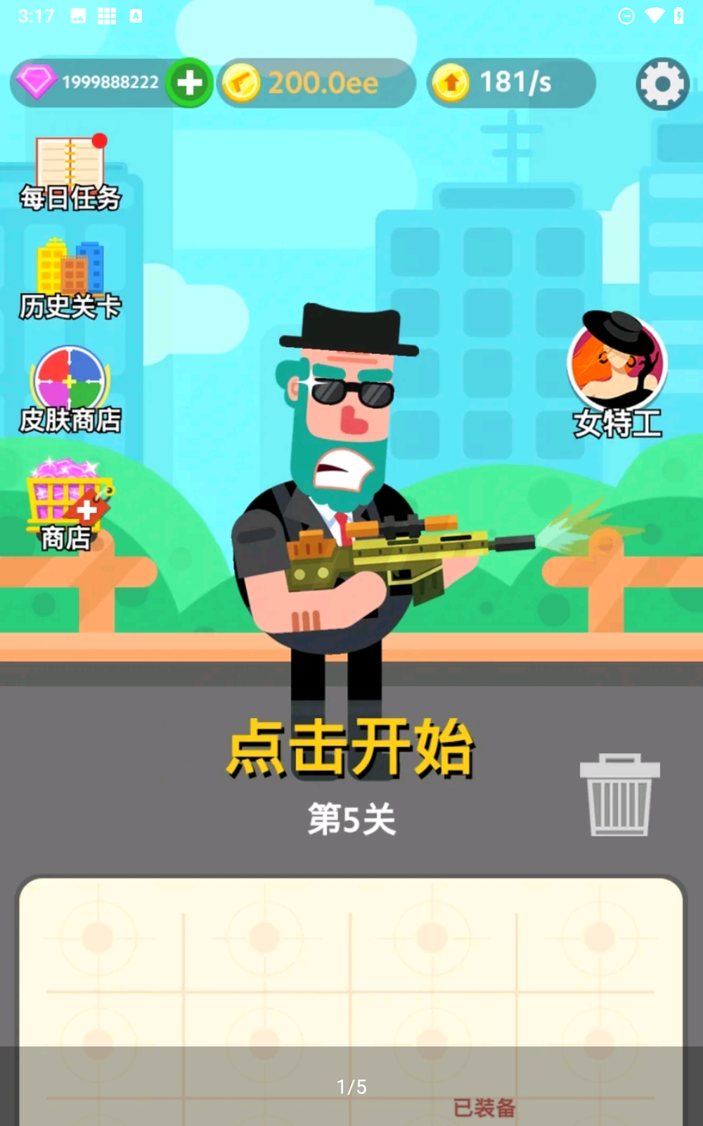 3、收集金币升级您的武器和狙击手