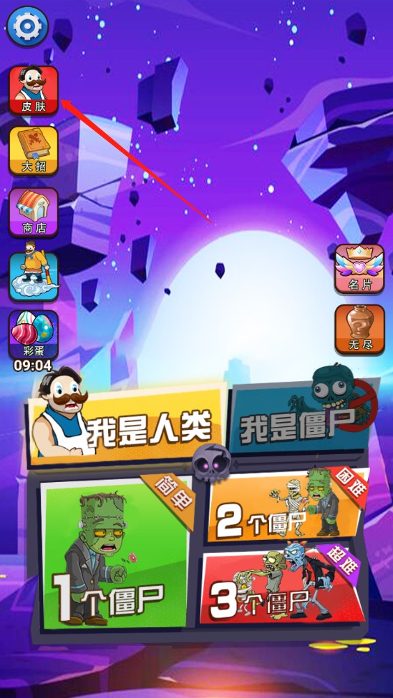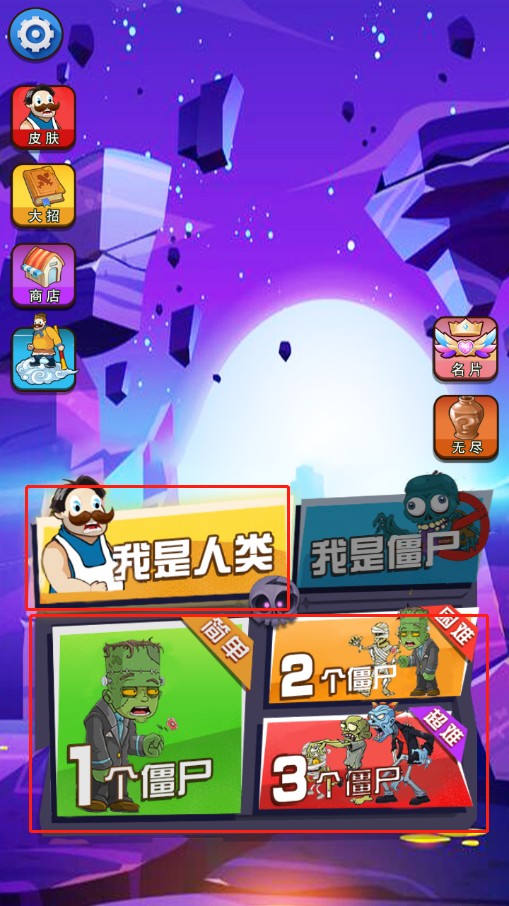 1、首先,玩家下载并安装好游戏之后,打开进入,可以选择是人类或者僵尸,在这里,小编选的是人类,然后选择下方的难易程度,分别有简单、困难、超难三种。