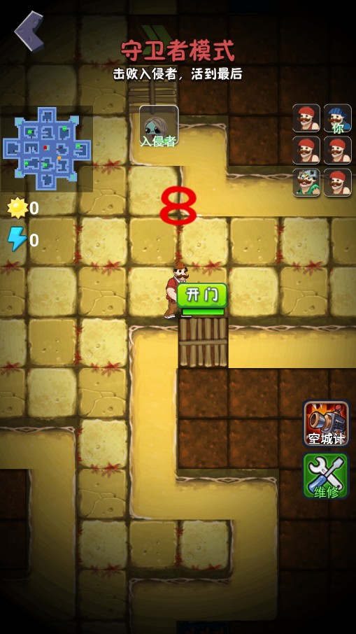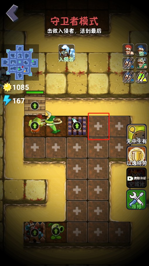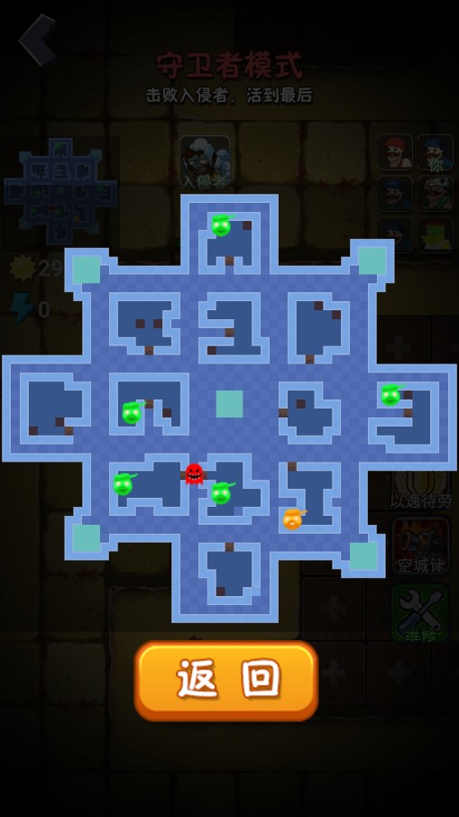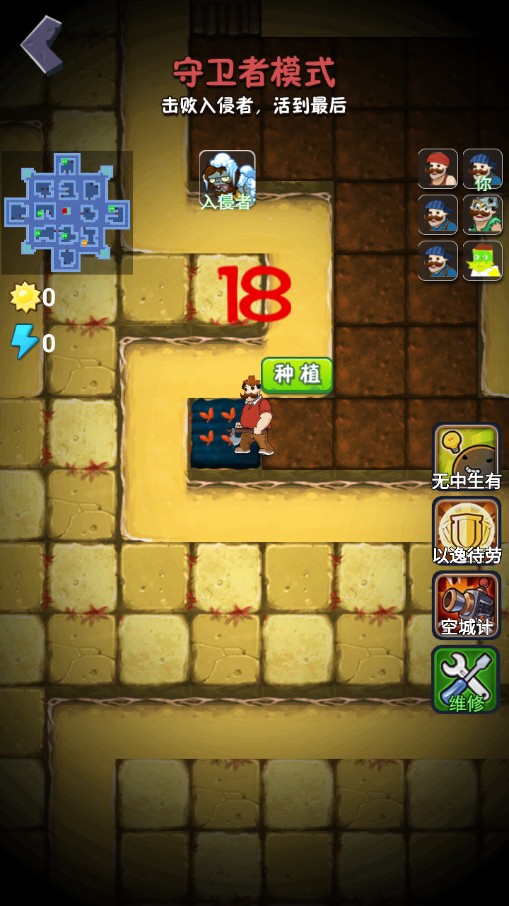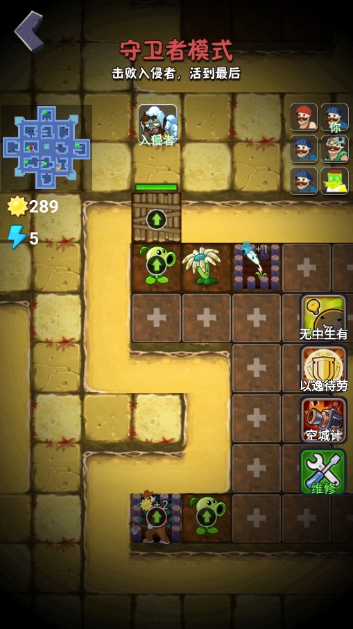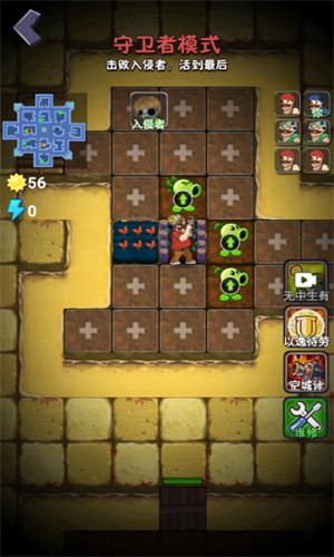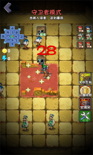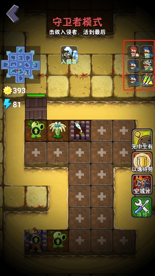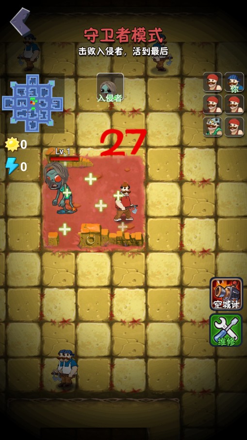 5、然后就进入到守卫者模式,玩家需要击败入侵者,也就是僵尸,然后活到最后。