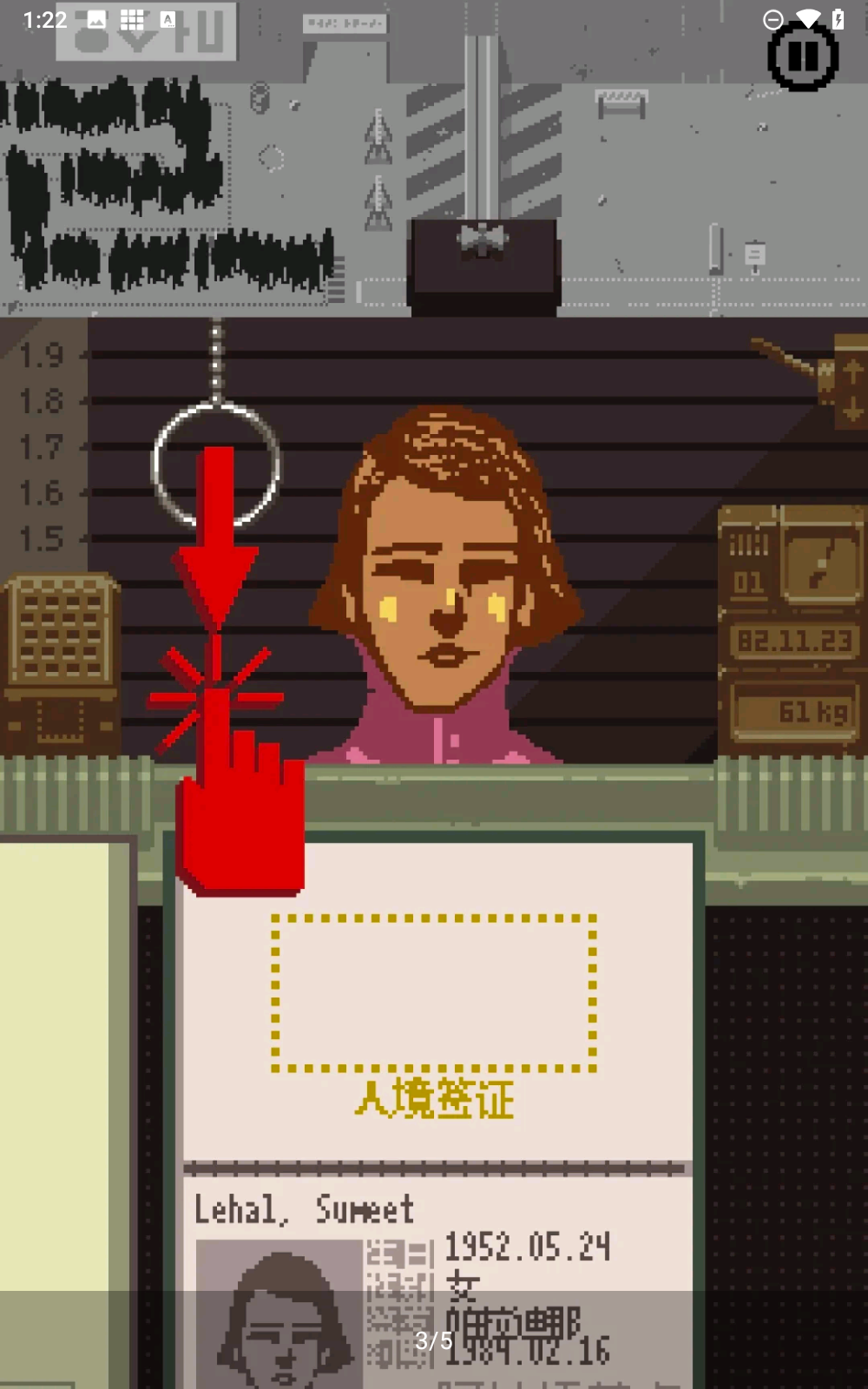 请出示证件中文版是一款像素闯关类游戏,我们需要仔细辨别每一个人的证件,防止有不法分子乘机偷溜入境。