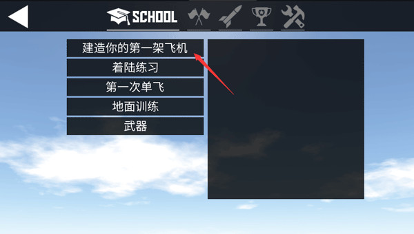 2、可以看到已经是中文的了,你可以开始建造你的第一架飞机;