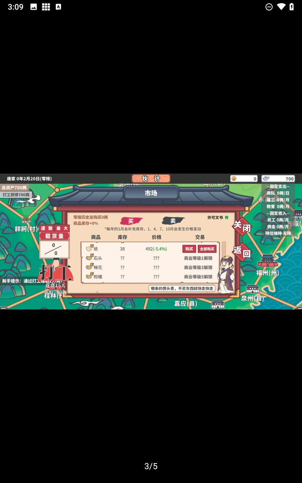 2、只有拥有20000两才可以开始商业,所以首先要进行打工赚钱,每次打工都会消耗游戏中的15天,不过不要担心,只要随便打几次工就可以获得神秘女子的资助。