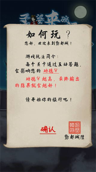 孟婆来碗汤画风采用Q版卡通风格,玩家将以幽灵的身份开展游戏,通过回答问题积攒功德。