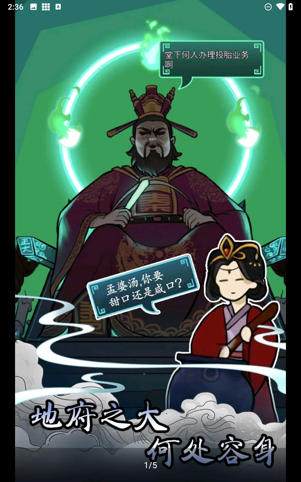 孟婆来碗汤拥有着无厘头搞笑的剧情,虽然是以鬼魂为题材,但丝毫没有恐怖氛围。在这里玩家将扮演一只小幽灵,来到传说中的地府开展一场轰轰烈烈的大冒险。在这里我们可以遇到耳熟能详的地府风云人物,孟婆,黑白无常,牛头马面,阎王爷等NPC。他们会询问我们一些问题,这些问题影响着我们的后续结局所以需要谨慎选择,只要功德越高,下辈子投胎就可以选择幸福人生了。