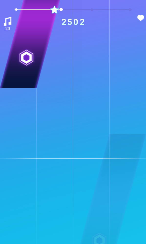 1、观察屏幕上方落下的钢琴键块,对应节奏准确点击或长按;