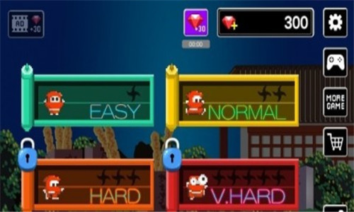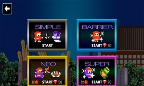 3、通过击败所有8个敌人来清除阶段1。使用忍者明星,跳跃和强力道具突破50个关卡。