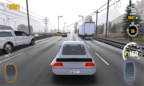 7、如果你按了灯如果他在变道就会不会继续变了,如果他没变道你持续加速,他就会变道让你走。你看在高速行驶的时候会加额外分。之后越到后面越难于是撞车就输了。它会根据你表现发放钞票。