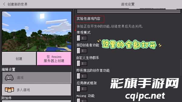 4、往下翻找到实验性游戏内容,将这里的全部打开。