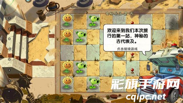 1、欢迎来到我们本次旅行的第一站,神秘的古代埃及,这里会交代游戏剧情,听说埃及法老有不计其数的宝物,说不定这里能找到不少好东西。好东西不知道,僵尸倒有不少,准备战斗吧;