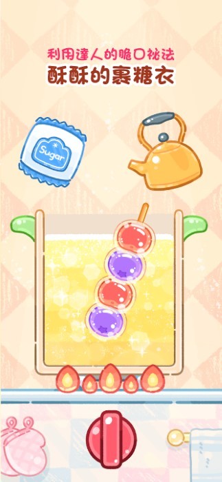 4、串好以后就可以开始熬糖了,按照游戏中的提示进行制作