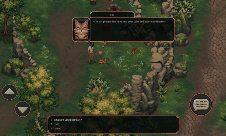 3、动物互动设计独特,通过旁白表达动物的人性化反应和视角,在丰富探索乐趣的同时,补充世界观的细节。
