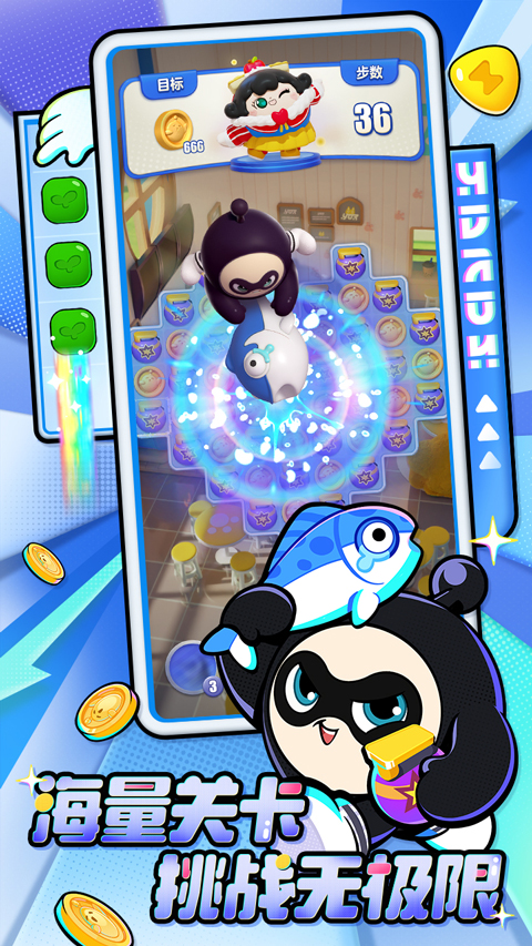 1、游戏玩法十分简单,经典的三消玩法,搭配各种好用的道具,萌新玩家也能轻松上手
