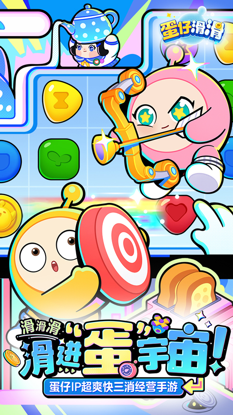 《蛋仔滑滑》是网易基于《蛋仔派对》IP打造的消除养成手游。游戏融合了三消、养成与经营元素,玩家化身岛主,通过爽快消除关卡获取资源,建设蛋仔家园。游戏以Q萌画风、丰富道具、创意障碍及温馨彩蛋为特色,提供全方位解压体验,同时融入IP故事,打造治愈养崽的双重乐趣。