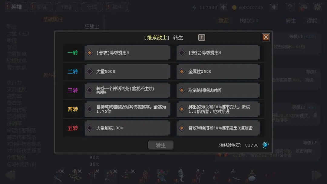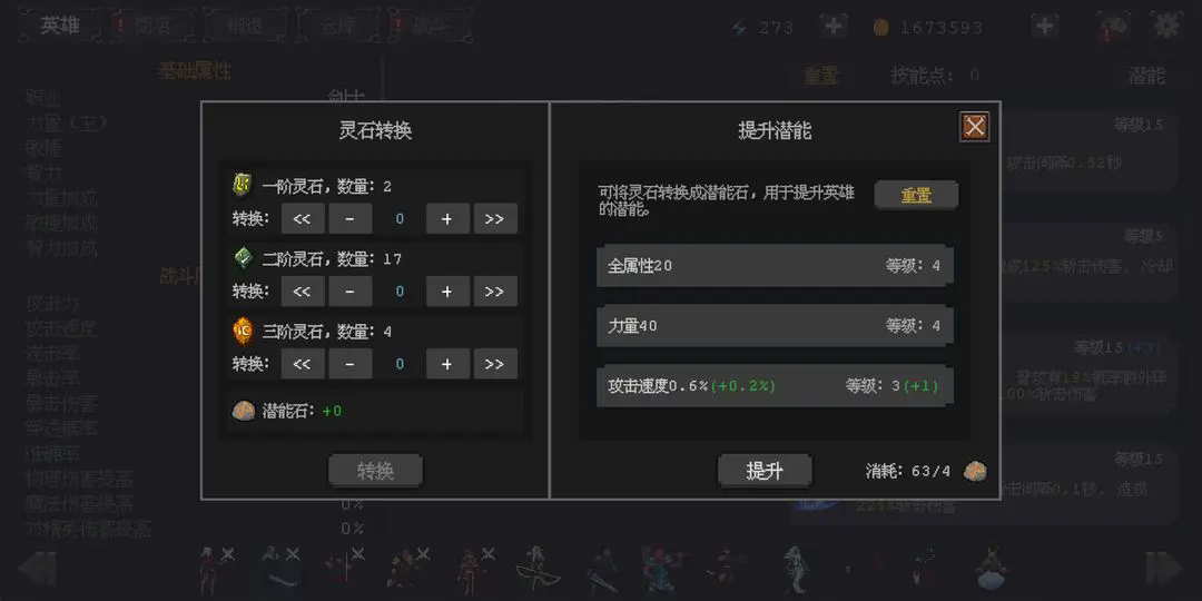 英雄升到60级后,可使用潜能石增加属性。