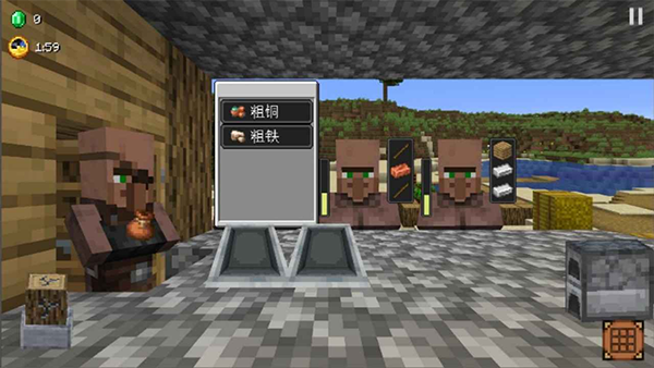 2、界面似沙威玛传奇,点村民得矿石,原木产木材,右侧制作矿石。