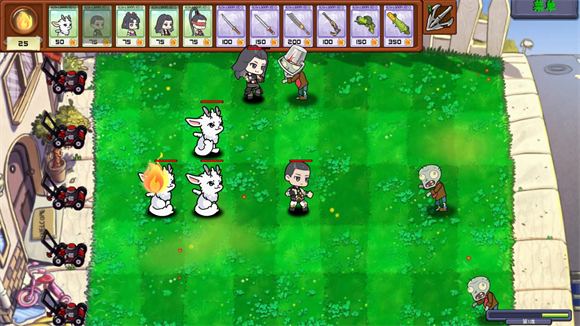 2、原版的【阳光】改成了【火种】,每隔一段时间会掉落在草地上,可以将它们收集起来。放置角色需要火种,购买武器也需要火种。在草地上放置麒麟(向日葵),可以加速火种的收集速度