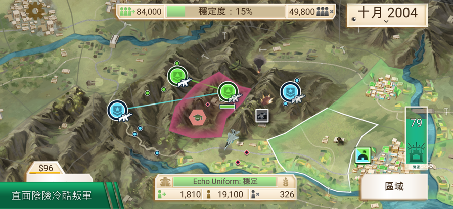 操纵叛乱分子,试图推翻敌对的地方政府,同时试图稳定自己的阵营!游戏的难度可以动态调整,以确保所有技能水平的玩家都能享受具有挑战性的决斗。