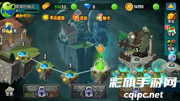3、点击抽卡,你还可以用闯关获得的金币和钻石来抽取新植物以及它们的装备;
