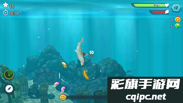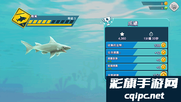 4、完成50个任务,寻找宝藏获得黄金和宝石,用来升级你的鲨鱼或购买特殊的救生物品;