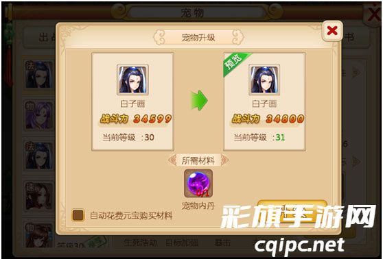 宠物升级所需要宠物内丹,随着宠物等级提高或者品质提高,所需的内丹也就越来越多。