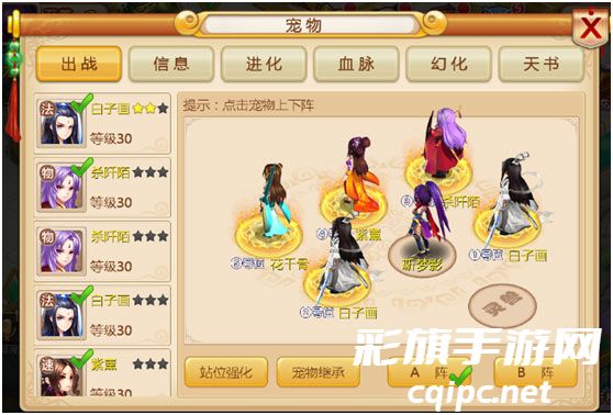 宠物的培养方式分为四种,分别是升级、进化,血脉,幻化和天书。我们可以在游戏界面点击左上角的宠物头像,来进行进化幻化等等的操作。