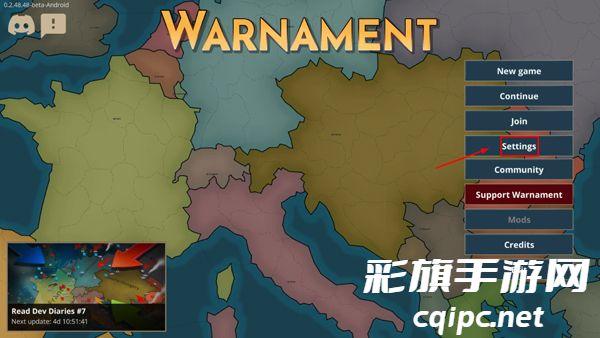 1、打开战争警告中文版,点击右侧settings;