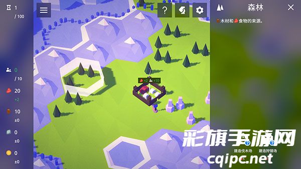 6、点击以解锁的地块,可以安排人手前去完成伐木场、狩猎场等设施的建造。