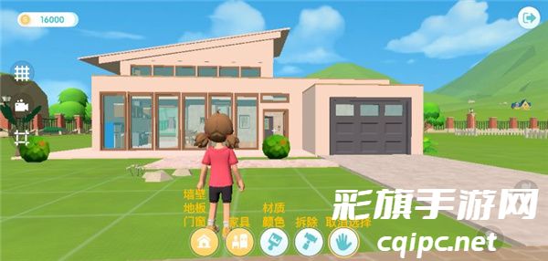 6、进入建造模式后,在屏幕下方有5个按键,点击每个按键都可挑选不同分类的搭建材料,还可通过改变材质和色彩来升级建筑外观。期待你们建造出个性建筑哦!